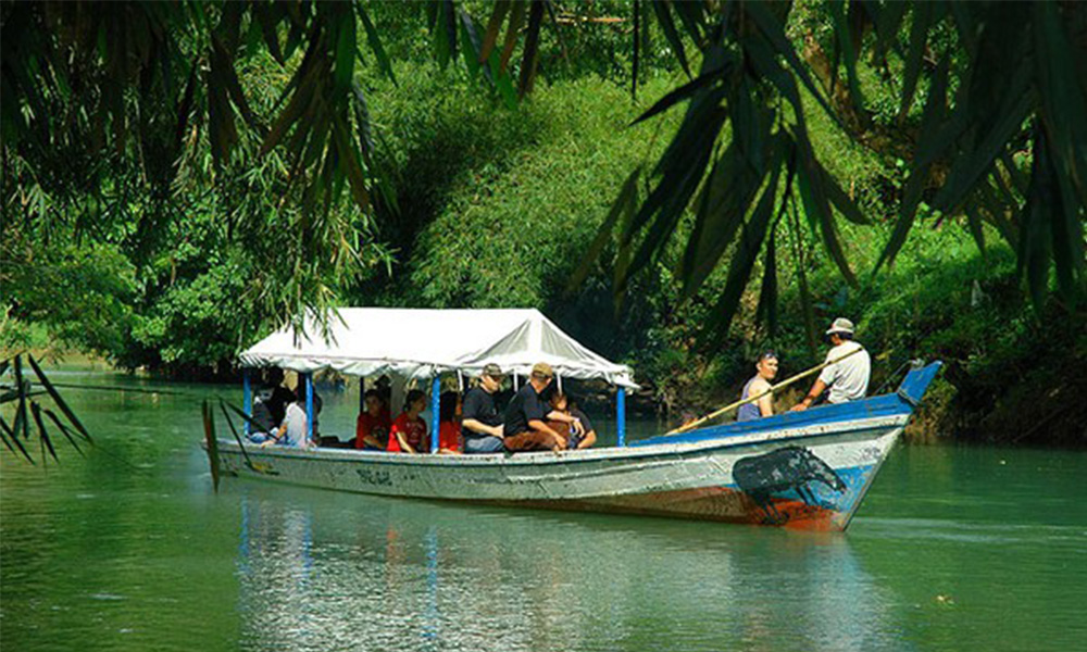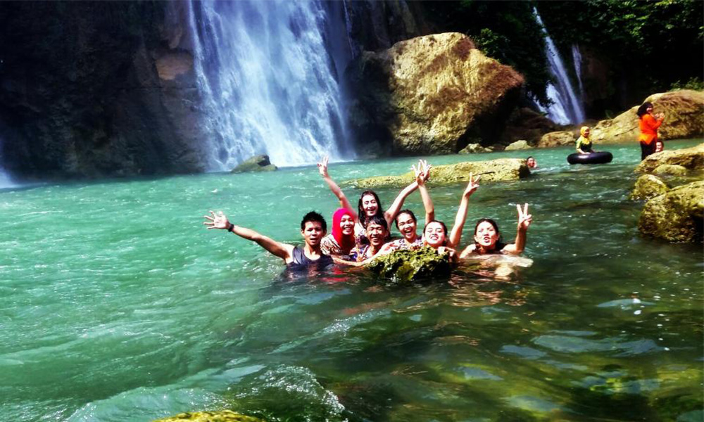 Wisatasukabumi.com - Secara adminstratif Curug Cikaso terletak di Dusun Ciniti, Desa Cibitung, Kecamatan Surade, Sukabumi, Jawa Barat. Curug Cikaso berjarak tempuh sekitar 8 Km dari Surade, 15 Km dari Jampang Kulon, 30 Km dari Ujunggenteng, sekitar 110 Km dari Kota Sukabumi, dan +/- 70 Km dari Palabuhanratu. Patokan pertama perjalanan diawali dari Kota Sukabumi, baik yang datang dari arah Jakarta, Bogor, ataupun Bandung. Dari Kota Sukabumi, ambil jalan menuju Ujunggenteng melalui Kecamatan Jampangtengah – Kecamatan Lengkong – Kecamatan Waluran – Kecamatan Jampangkulon. Patokan terakhir perjalanan menuju Curug Cikaso yaitu kota kecil Surade yang memakan waktu tempuh sekitar setengah jam (berjarak tempuh sekitar 8 Km) dengan kendaraan roda dua atau empat hingga tiba di pertigaan Jalan Cikaso dengan kondisi jalan yang berliku dan beraspal baik. Dari Simpang tiga (sebagai jalan masuk dan juga tempat parkir bagi yang membawa kendaraan) ini perjalanan diteruskan dengan berjalan kaki sekitar 2 Km menuju lokasi melewati pematang sawah dan ladang penduduk. Selain itu dapat juga menggunakan sampan dengan menyusuri sungai Cikaso. Sampan ini banyak tersedia di sekitar Jembatan Cikaso. Waktu tempuh sekitar 15 menit dari warung dekat pertigaan atau persimpangan jalan menuju Curug Cikaso dan Curug Cigangsa. Harga sewa sampan sekitar Rp. 70.000/sampan (untuk 12 penumpang). Setelah sampai di dekat tepian daratan menuju curug, perjalanan dilanjutkan dengan berjalan kaki menyusuri jalan setapak sejauh 100 m hingga tiba di lokasi curug.